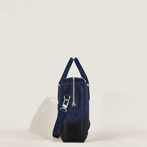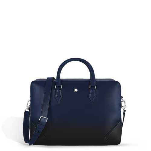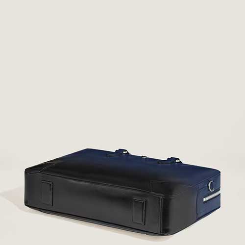 Intramontabile compagno per i viaggi d’affari, questo portadocumenti incarna la maestria artigianale e la tradizione della scrittura Montblanc. Realizzato in pelle Meisterstück liscia navy con effetto Sfumato applicato a mano, presenta impunture, cursori della cerniera e manici che richiamano con discrezione la forma di un pennino. Dentro, scopri un interno organizzato con cura con una tasca con cerniera, due tasche aperte e due passanti per strumenti da scrittura per un’organizzazione semplice. I versatili manici superiori in pelle, una tracolla in pelle rimovibile e un sistema satellitare per agganciarla al trolley consentono di portarla in tanti modi.