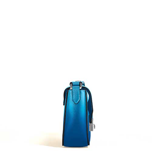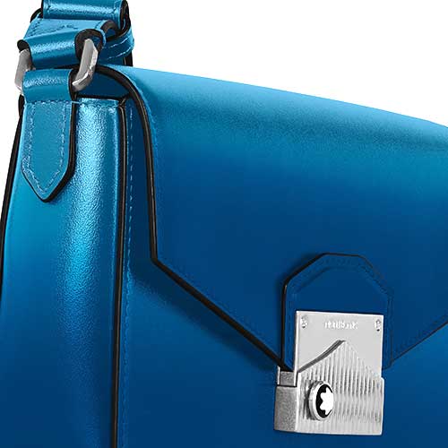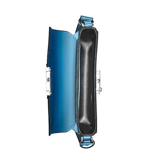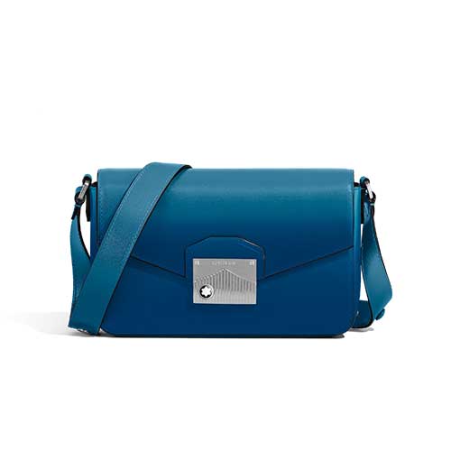 Scopri la nuova messenger bag mini Meisterstück. Realizzata in pelle blu fumé con un effetto sfumato, presenta un’elegante chiusura montagna ispirata al profilo del Monte Bianco e decorata con logo Montblanc grande. Lo scomparto principale è facilmente accessibile sotto la patta, mentre una tasca aperta all’interno offre un’organizzazione impeccabile. Completa questa messenger bag una tracolla in pelle regolabile, che offre un connubio di stile e funzionalità per le tue avventure quotidiane.