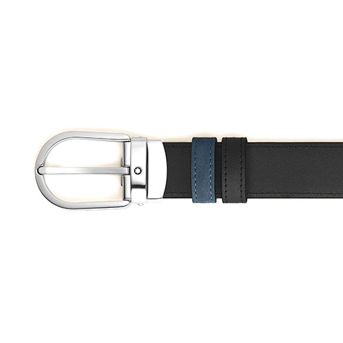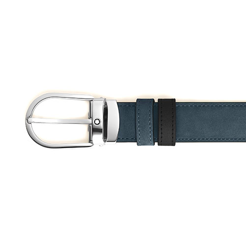 Con pelle scamosciata blu velluto morbida al tatto su un lato e pelle liscia nera sull’altro, questa cintura da 30 mm offre due stili. La fibbia a ferro di cavallo finitura palladio lucido crea un mood intramontabile completato dall’emblema Montblanc.