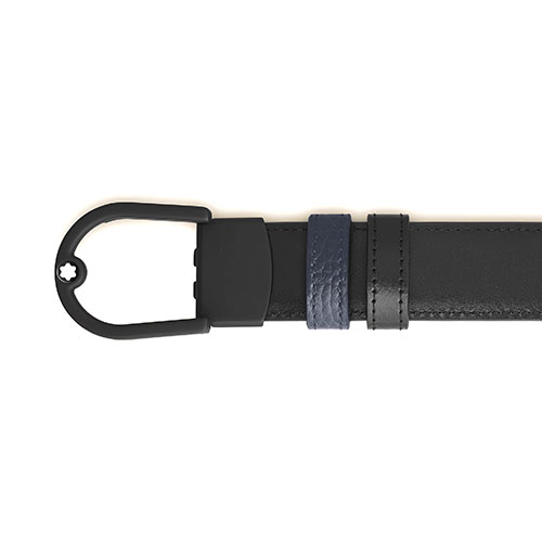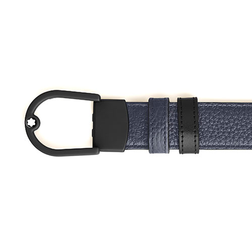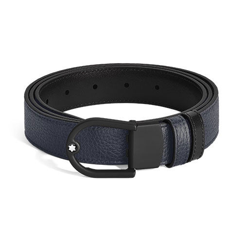 Questa cintura reversibile 30 mm combina una silhouette elegante di una fibbia finitura PVD nero effetto caucciù con la versatilità di due distinte cinture in pelle. Dalle linee pulite e curve, la fibbia a ferro di cavallo aggiunge un tocco di moderna sofisticazione al tuo stile. La cintura offre versatilità e stile raffinato con due look distintivi in un unico accessorio: da un lato pelle granulata declinata nell’intensa tonalità nero blu, dall’altro ricercata pelle Meisterstück nera dalla finitura intramontabile e lucida.