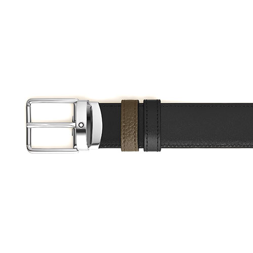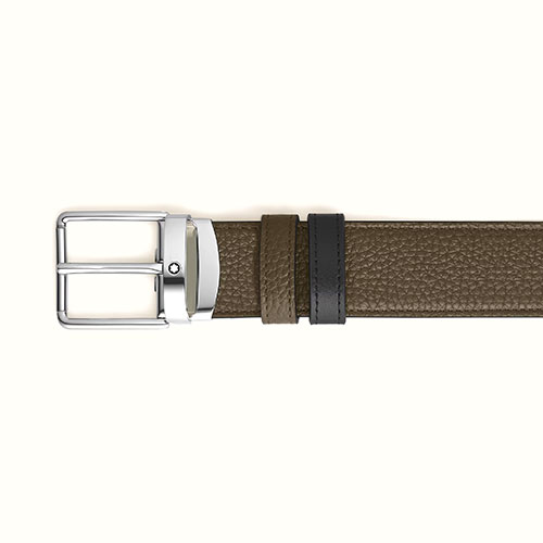 Questa cintura da 35 mm reversibile offre un’eleganza discreta e stile versatile. Un lato della cintura è in pelle granulata in un’elegante tonalità di kaki, mentre l’altro è in pelle Meisterstück liscia nera classica. La fibbia ad ardiglione Everyday, dal ricercato profilo rettangolare, presenta una lucida finitura PVD nera effetto caucciù e bordi puliti con un logo Montblanc discreto intarsiato nella base.