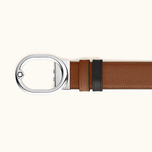 La cintura reversibile da 35 mm L’Ovale abbina l’eleganza della fibbia ovale finitura palladio e la versatilità di due distinte cinture in pelle. La fibbia, che si discosta dai tradizionali modelli quadrati, aggiunge un tocco fresco al tuo stile. La cintura offre due opzioni: un lato in pelle di vitello con stampa Sartorial fulvo per un look caldo e testurizzato, mentre un altro in pelle Meisterstück nera per un mood classico e sofisticato adatto a qualsiasi occasione.
