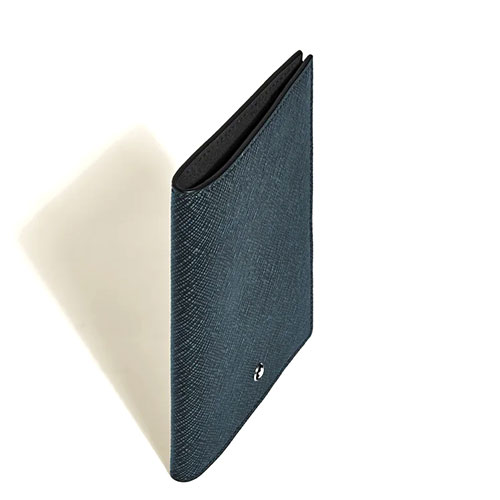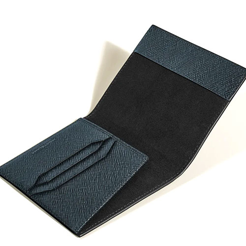 Raffinata compagna di viaggio, questa custodia per passaporto è realizzata in pelle Sartorial goffrata bicolore in un’elegante combinazione di blu e nero. Pensata per offrire funzionalità e stile, custodisce il passaporto in totale sicurezza e offre due aperture per carte di credito. Un accessorio essenziale per viaggiatori sofisticati.
