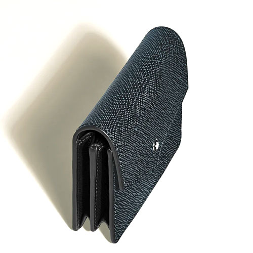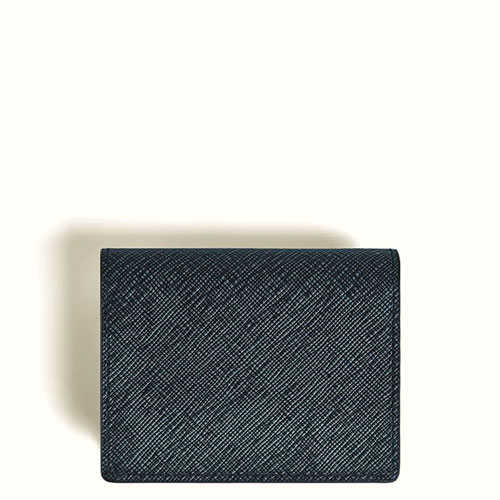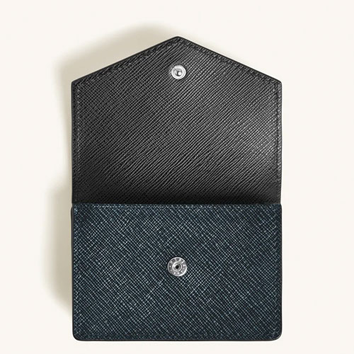 Pensato per chi ama lo stile minimalista e funzionale, questo ricercato porta carte è realizzato in pelle Sartorial goffrata in una raffinata combinazione di blu e nero classici. L’elegante modello presenta una chiusura con patta e bottone a pressione per custodire le tue carte in totale sicurezza. All’interno offre due scomparti e una tasca aggiuntiva che offre ampio spazio per le tue carte essenziali e alcune extra.
