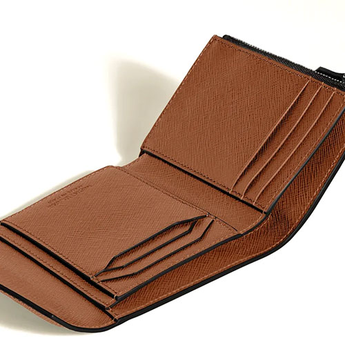 Realizzato in pelle Sartorial goffrata nella raffinata tonalità fulvo, questo portafoglio trifold è elegante e al contempo pratico. Pensato per essere riposto comodamente in tasca, l’apertura con fibbia rivela una tasca con cerniera per riporre al sicuro monete e chiavi, sei aperture per carte di credito, uno scomparto per banconote e due tasche aggiuntive per spazio extra.
