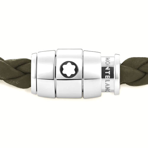 Questo gioiello, realizzato in morbida pelle, presenta una fibbia in acciaio pregiato lucido impreziosita dall’emblema Montblanc.