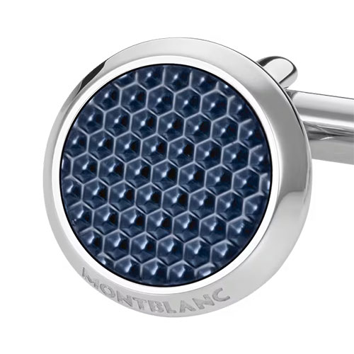 I gemelli Meisterstück celebrano uno stile sobrio ed elegante. L’intramontabile forma rotonda in acciaio pregiato con inserto in lacca blu a motivi esagonali, ispirata allo strumento da scrittura Meisterstück, crea un gioiello dalla forte identità Montblanc.
