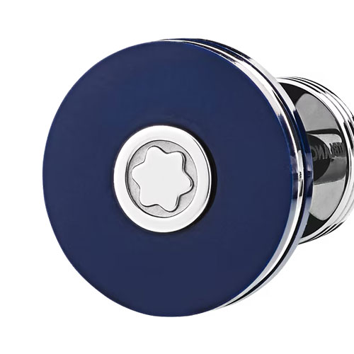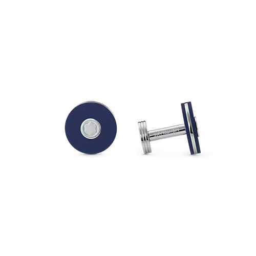 Questi gemelli rotondi in acciaio pregiato con resina blu si ispirano alla collezione di strumenti da scrittura PIX, presentando un design puro e semplice.