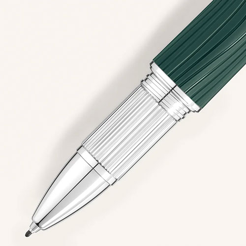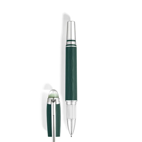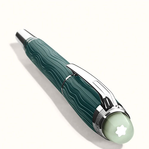 La StarWalker PolarGreen cattura la magia dell’aurora boreale. Sulla Terra, gli esseri umani possono alzare lo sguardo al cielo e lasciarsi trasportare dalla meraviglia di questo grandioso spettacolo. La cupoletta sulla parte superiore del cappuccio, realizzata in resina trasparente, si illumina in penombra, evocando le affascinanti danze luminose del cielo notturno. Il motivo a onde sulla pregiata resina verde del cappuccio e del corpo riproduce magnificamente i riflessi cangianti dell’aurora boreale e la finitura opaca ne esalta i riflessi. Il fineliner è arricchito da dettagli con finitura platino.
