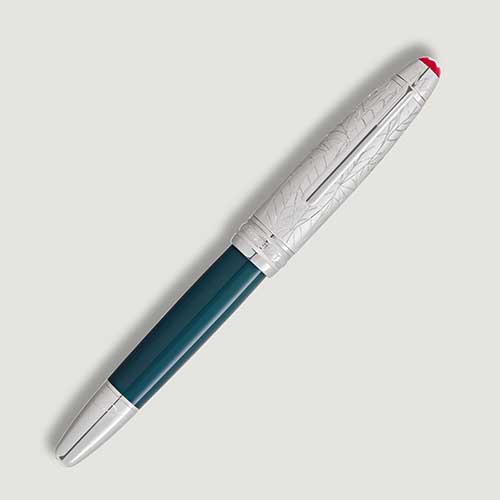 Romeo e Giulietta di William Shakespeare sono diventati il simbolo immortale dell’amore incondizionato fino alla morte. La storia dei due amanti, che muoiono a causa dell’astio tra le loro famiglie, è ancora oggi una delle opere letterarie più pertinenti e commoventi mai scritte. La collezione Montblanc Meisterstück Romeo e Giulietta è dedicata a questa pietra miliare della letteratura mondiale. Dedicata a Romeo, il corpo della Stilografica Doué LeGrand è realizzato in preziosa resina verde petrolio, rimando all’aura celestiale del giardino. Sul cappuccio finitura platino, circondata da un motivo di foglie finemente lavorato, è raffigurata una rosa delicata che simboleggia l’ardente speranza di Giulietta che il loro amore rimanga incontaminato dal retaggio familiare, proprio come il profumo puro e ammaliante di una rosa dura per sempre. Il pennino realizzato a mano in oro massiccio Au 750, reca un’incisione altamente simbolica: il nome “Romeo” immortalato all’interno di un cuore trafitto da un pugnale e incorniciato da raggi simili a stelle.