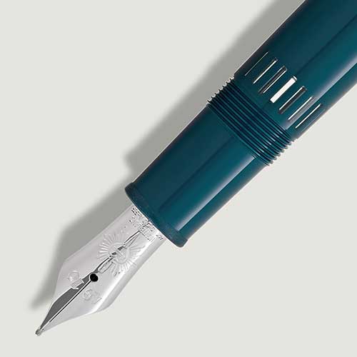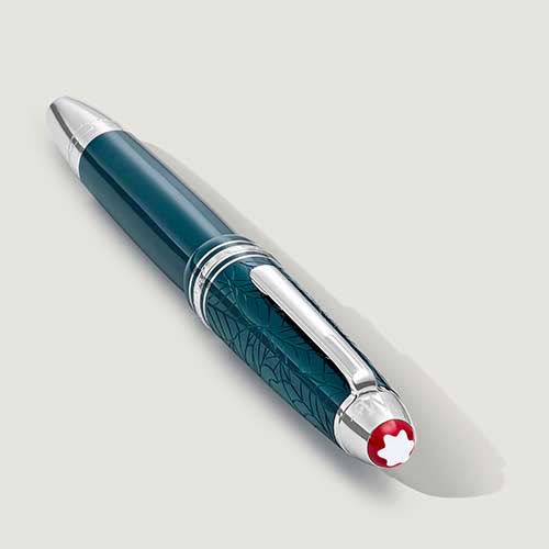 Romeo e Giulietta di William Shakespeare sono diventati il simbolo immortale dell’amore incondizionato fino alla morte. La storia dei due amanti, che muoiono a causa dell’astio tra le loro famiglie, è ancora oggi una delle opere letterarie più pertinenti e commoventi mai scritte. La collezione Montblanc Meisterstück Romeo e Giulietta è dedicata a questa pietra miliare della letteratura mondiale. Dedicata a Romeo, la Stilografica LeGrand è realizzata in preziosa resina verde petrolio, rimando all’aura celestiale del giardino, ed è ulteriormente impreziosita dai dettagli finitura platino a contrasto. Sul cappuccio, circondata da un motivo di foglie finemente lavorato, è raffigurata una rosa delicata che simboleggia l’ardente speranza di Giulietta che il loro amore rimanga incontaminato dal retaggio familiare, proprio come il profumo puro e ammaliante di una rosa dura per sempre. Il pennino realizzato a mano in oro massiccio Au 585, reca un’incisione altamente simbolica: il nome “Romeo” immortalato all’interno di un cuore trafitto da un pugnale e incorniciato da raggi simili a stelle.
